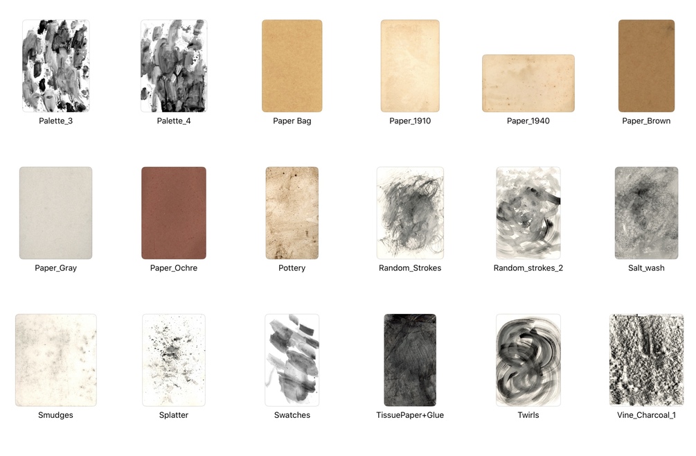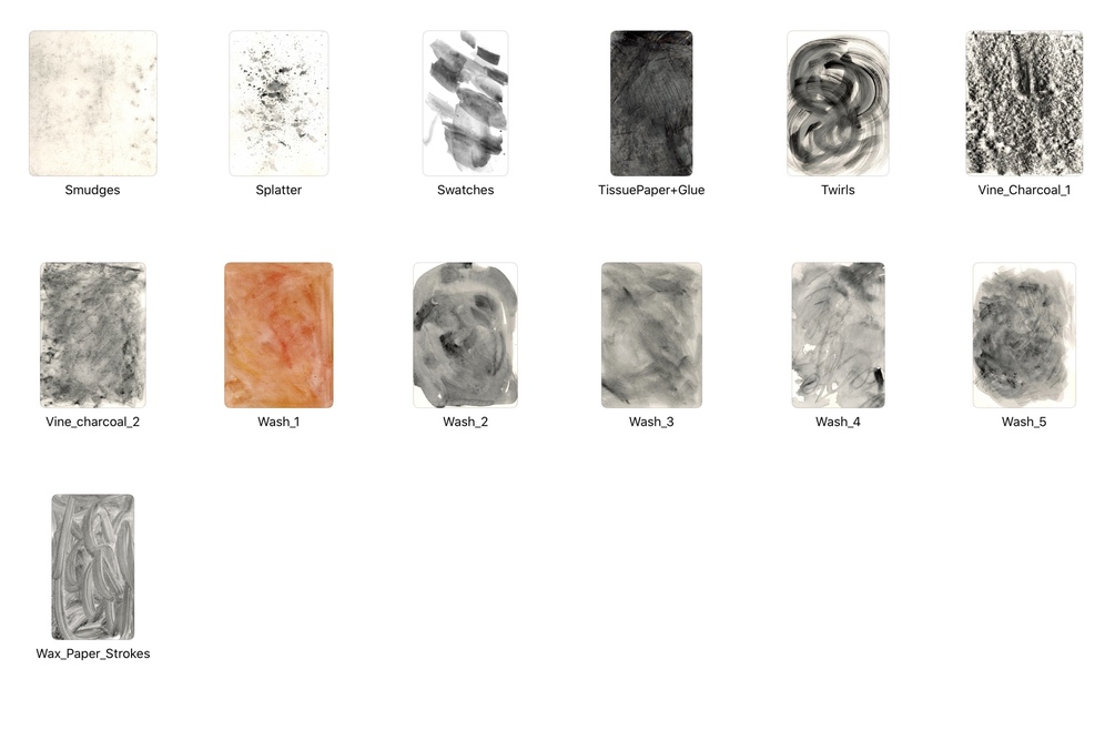 Hello! Here you will find 43 textures I’ve made over my time as an illustrator. These are hi-res scans of various washes, materials, papers, etc.